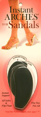 When wearing high heel sandals I cannot be without Dr. Rosenberg’s Instant Arches . I have super high arches and these spongy and durable foam arches provide instant relief and support.